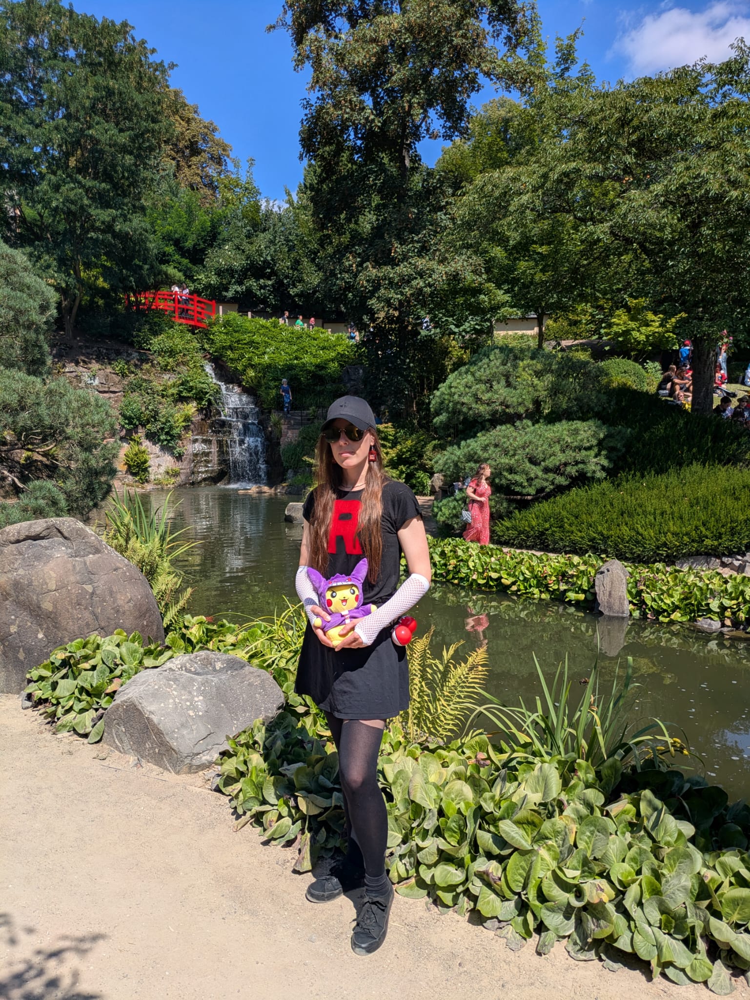 Ach ja – wer sich nun gefragt hat, in welchem Outfit ich dort unterwegs war: Mein Freund und ich sind kurzfristig Team Rocket beigetreten und haben uns für Giovanni im japanischen Garten auf Pokémon-Jagd begeben. 😉